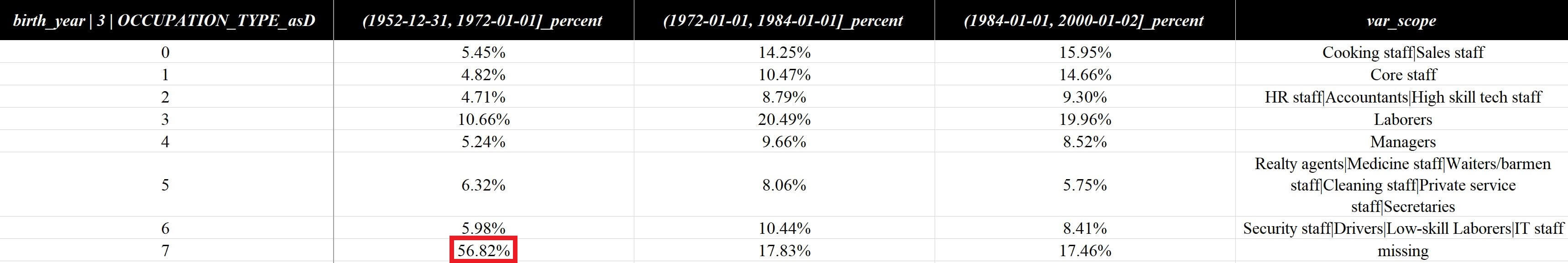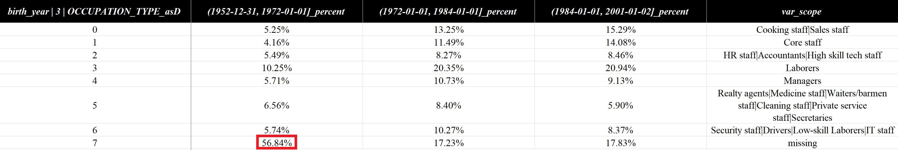 在涉及到缺失值处理时,我在进行处理时默认会将缺失值设置为单独一组并在报告中展示nan_group为"missing",如果确实有填充需求可以提前使用pandas的fillna单独提前处理,或使用下一节2.2 数据预处理介绍的replace_option来进行处理