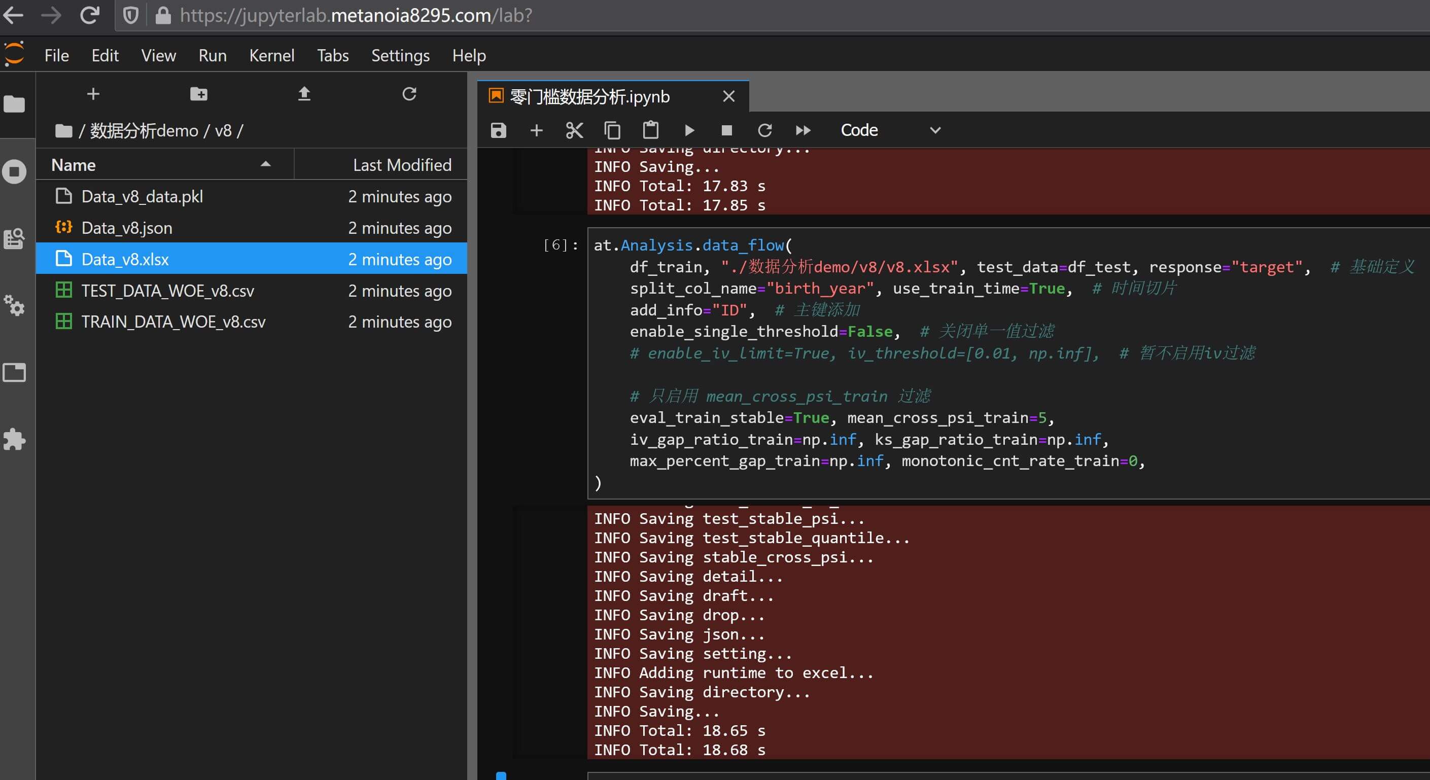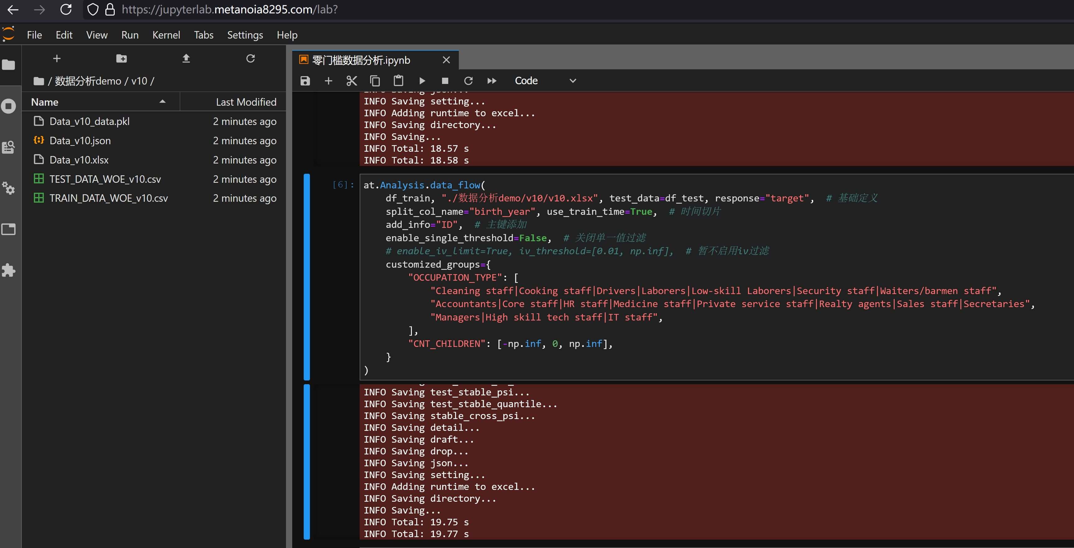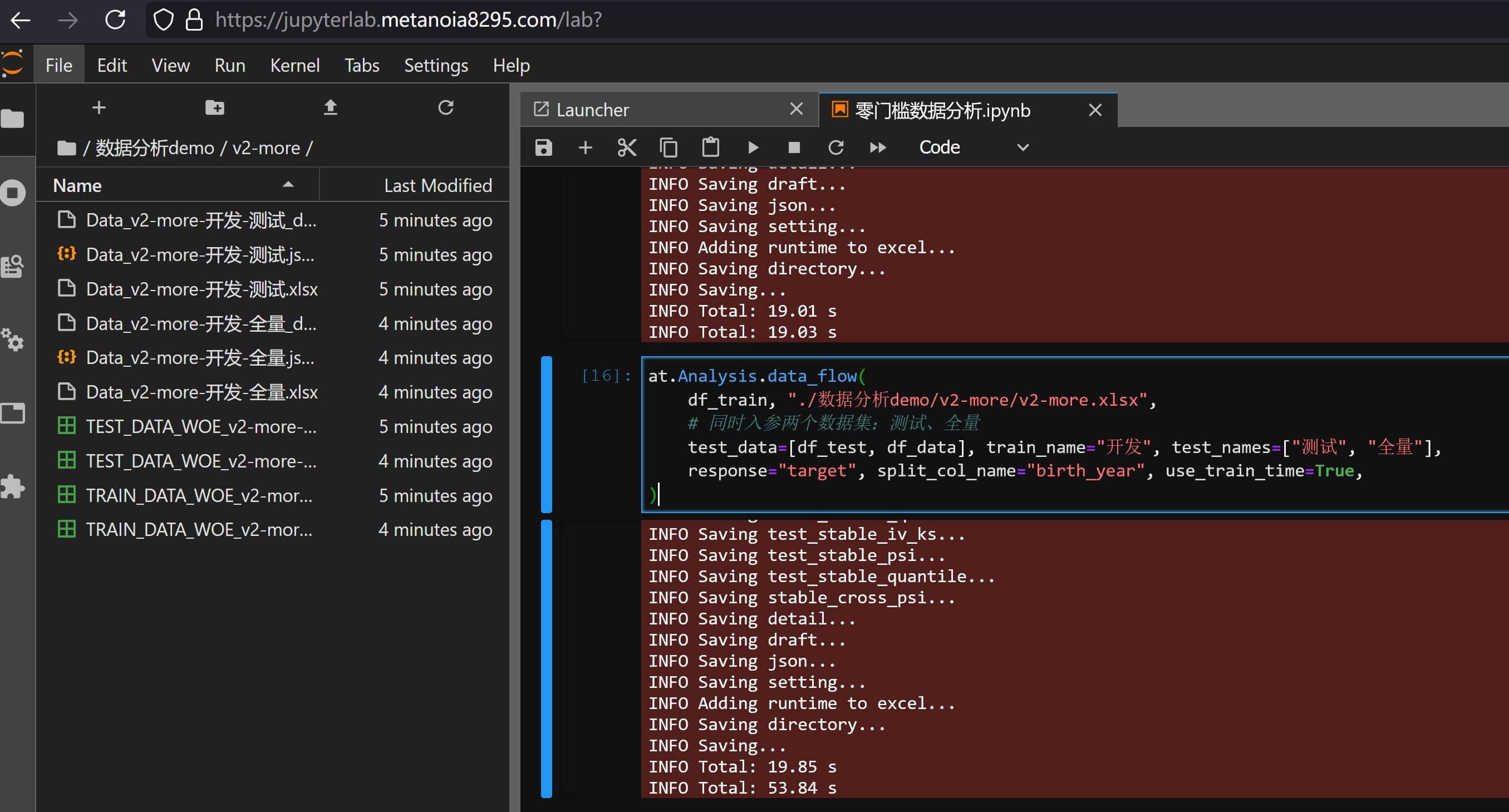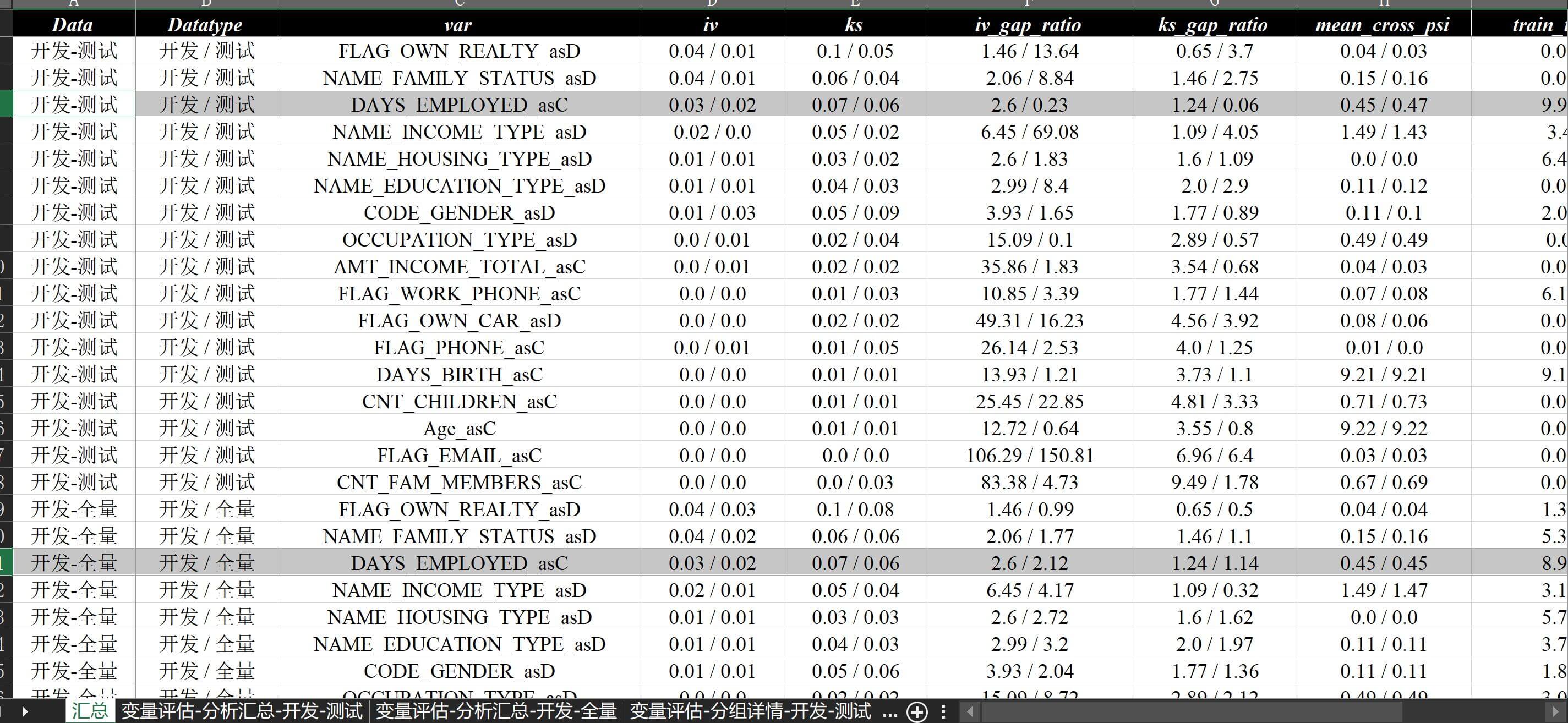 at.Analysis.data_flow(df_train, "./数据分析demo/v1/v1.xlsx", test_data=df_test, response="target")这样就完成了初步分析,分析过程视频如下: