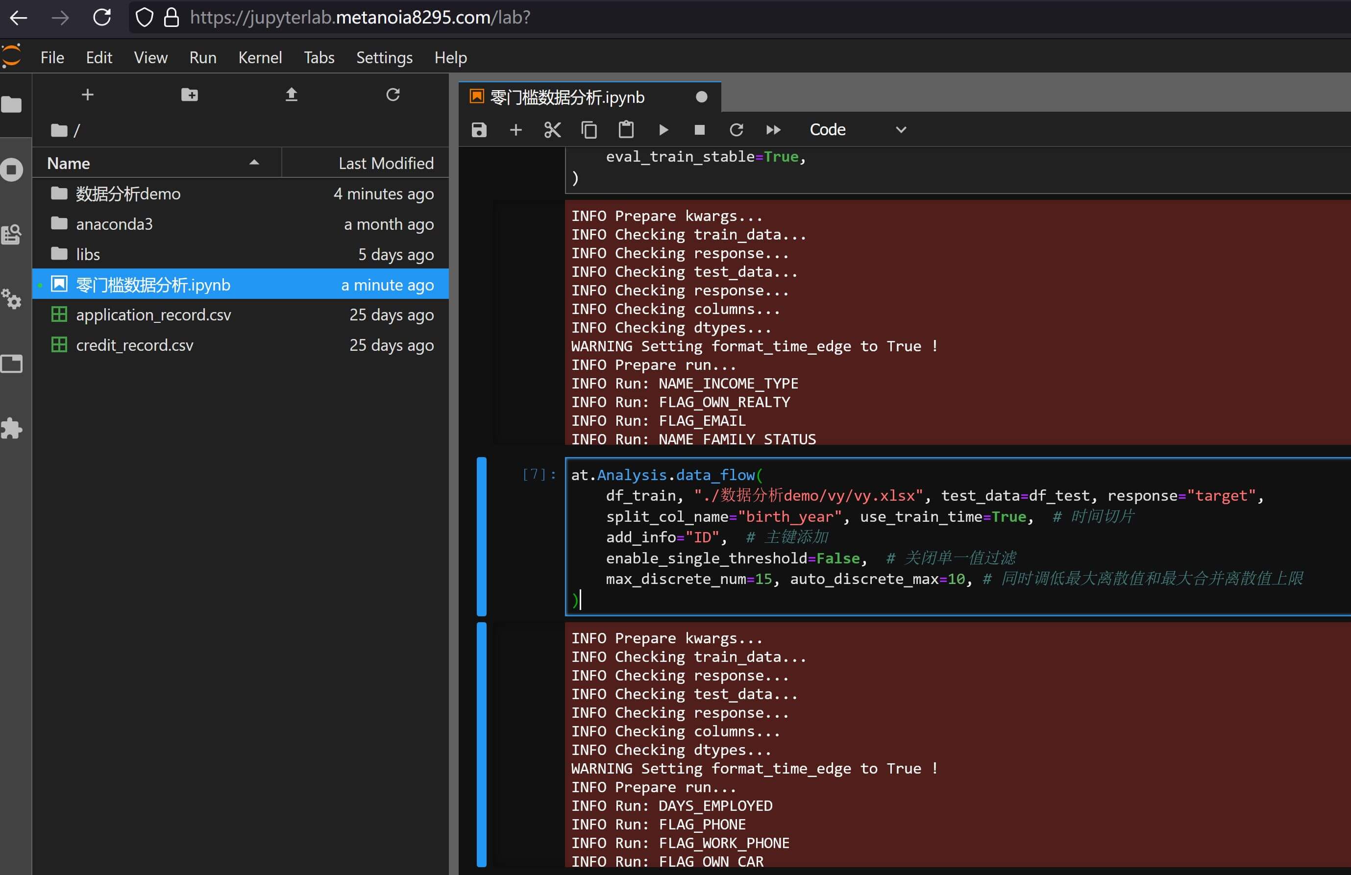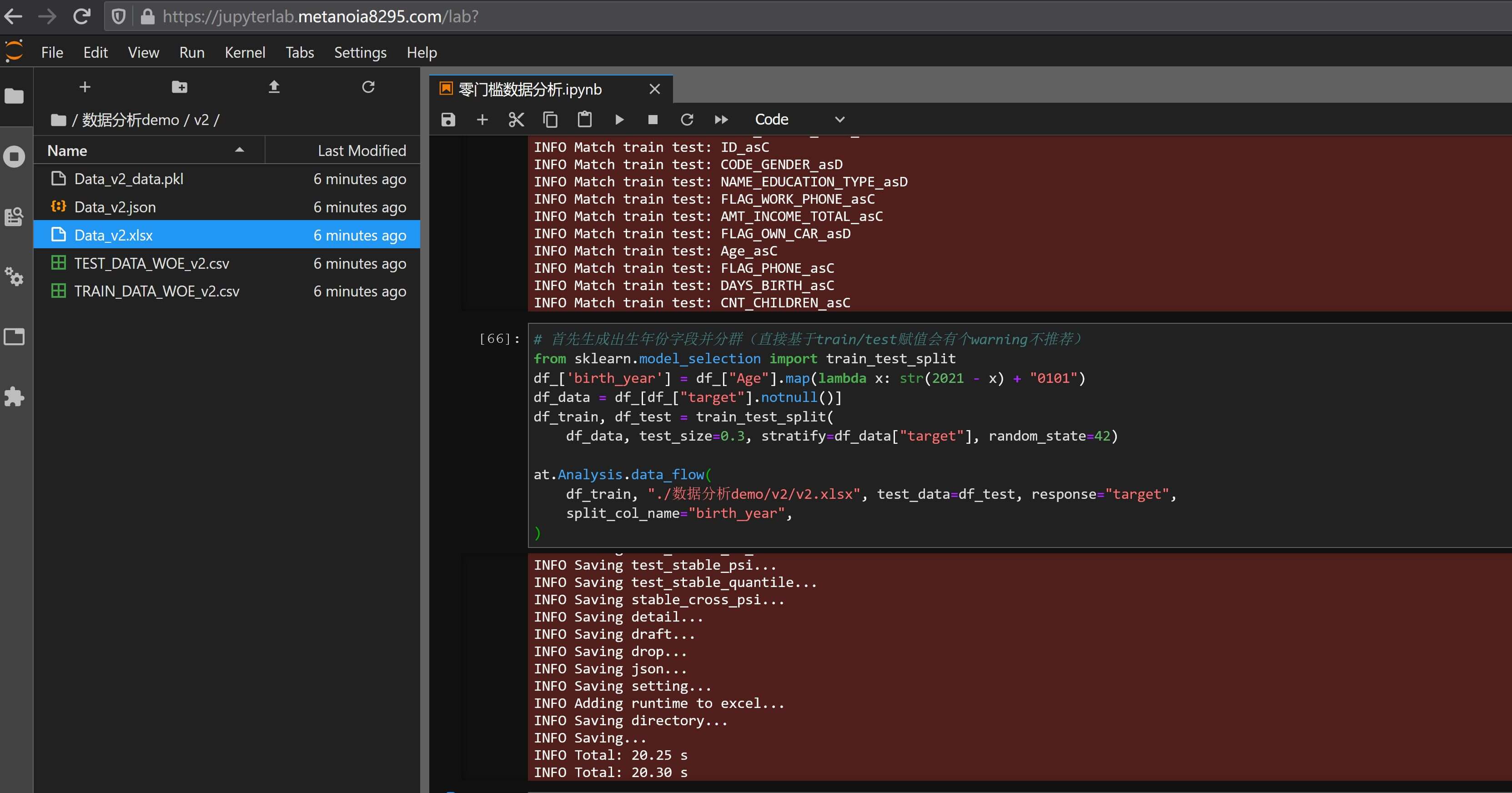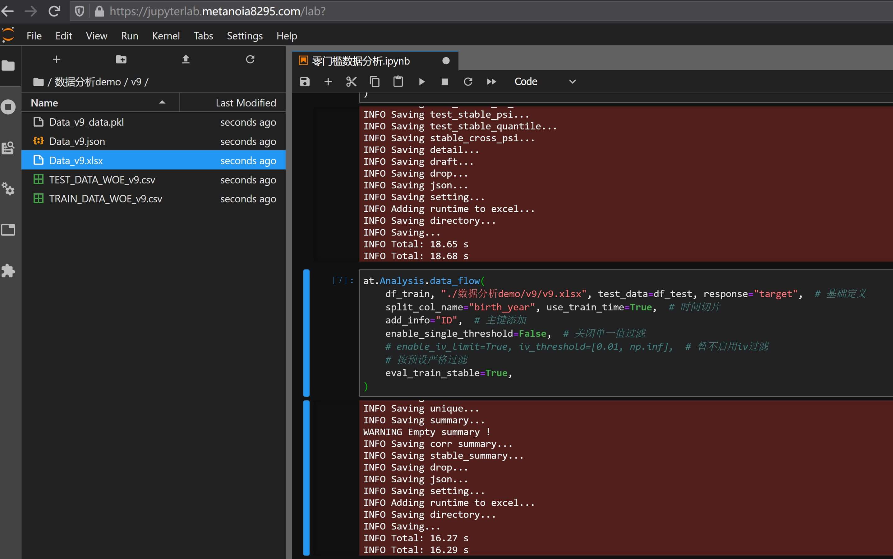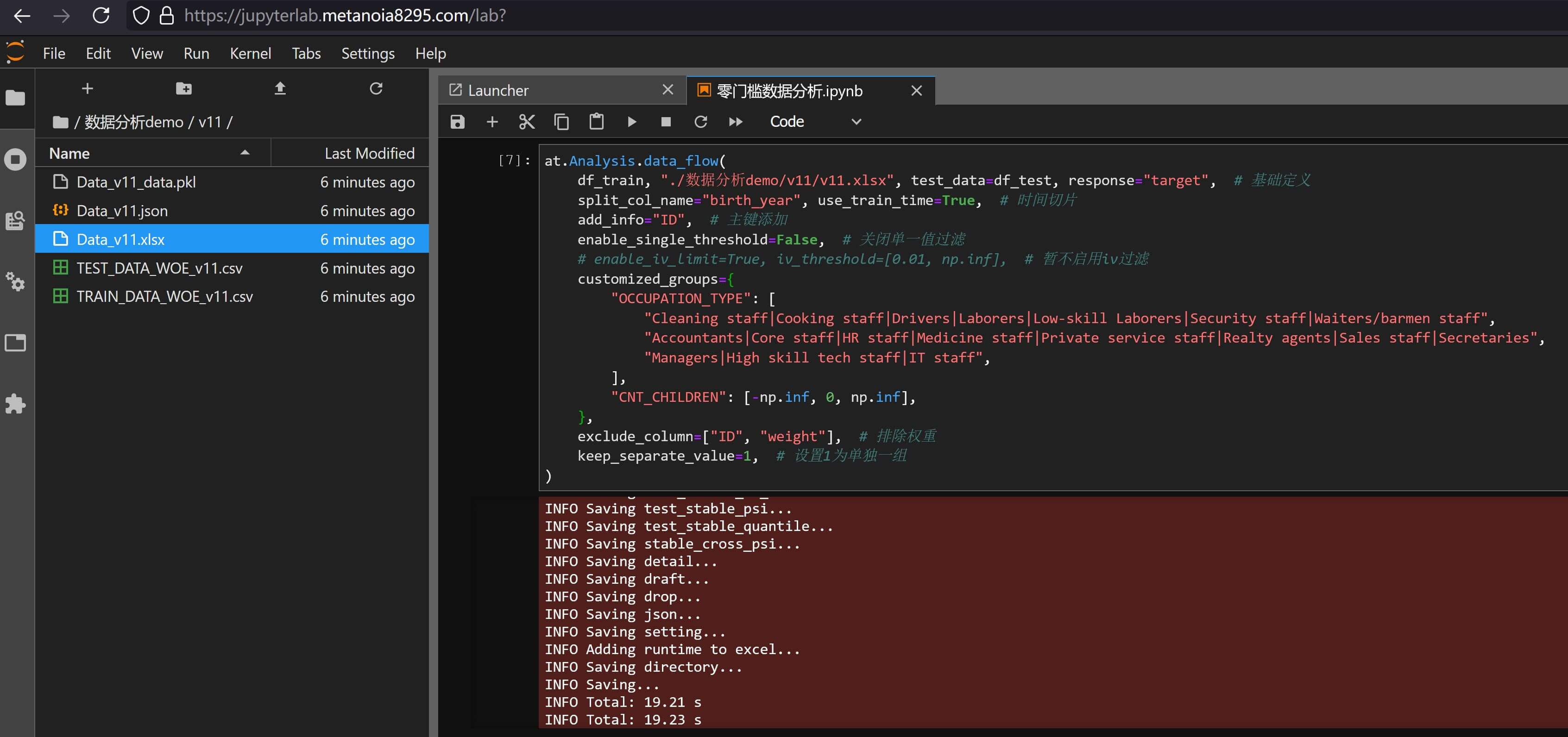 at.Analysis.data_flow(df_train, "./数据分析demo/v1/v1.xlsx", test_data=df_test, response="target")这样就完成了初步分析,分析过程视频如下: