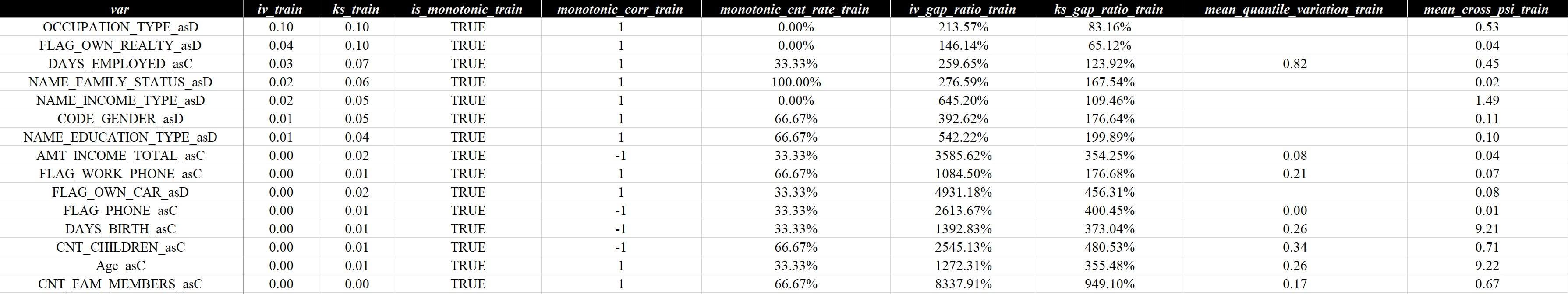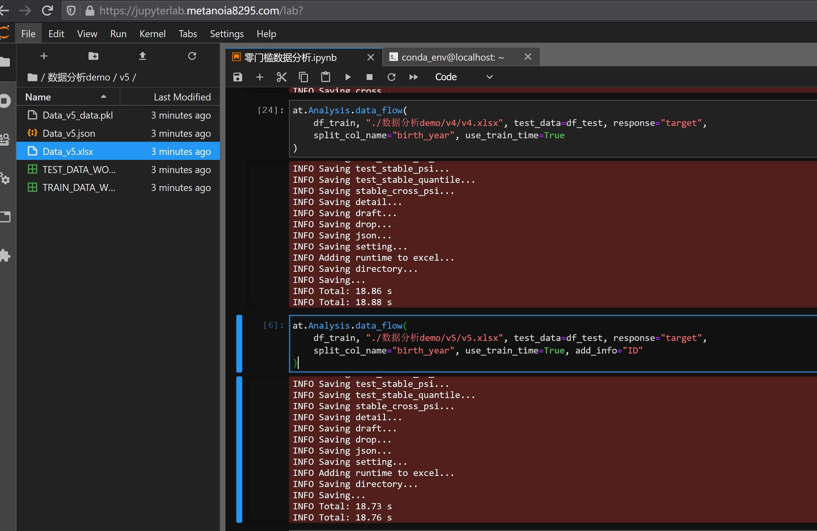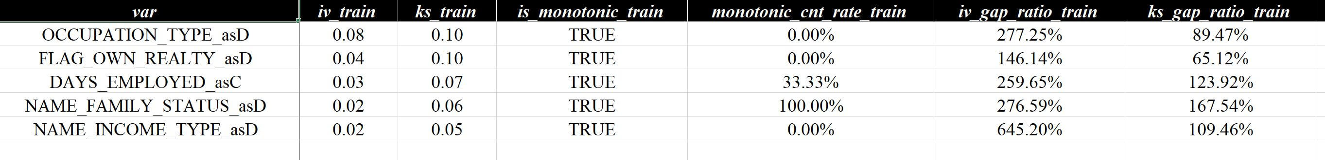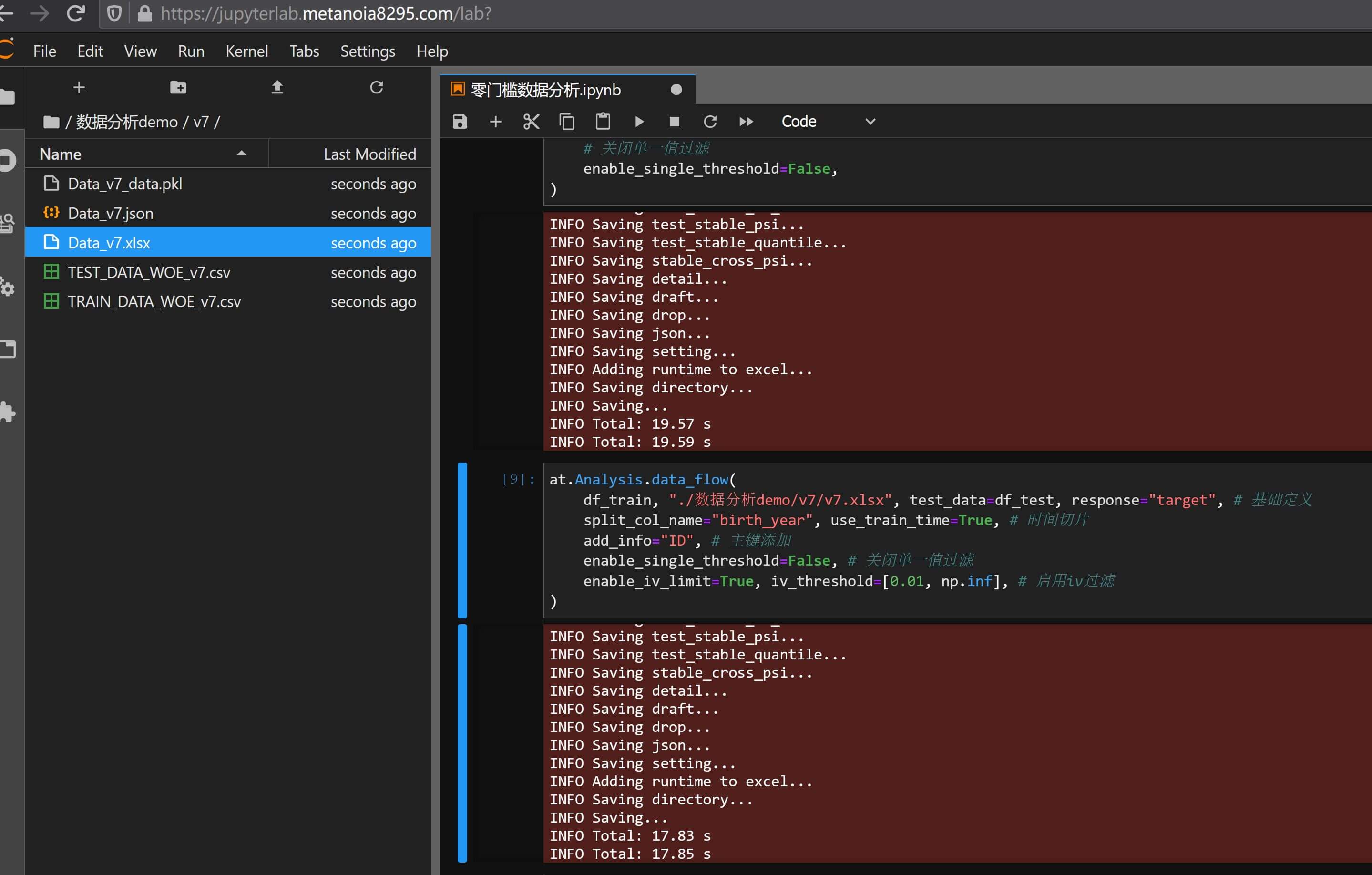 at.Analysis.data_flow(df_train, "./数据分析demo/v1/v1.xlsx", test_data=df_test, response="target")这样就完成了初步分析,分析过程视频如下: