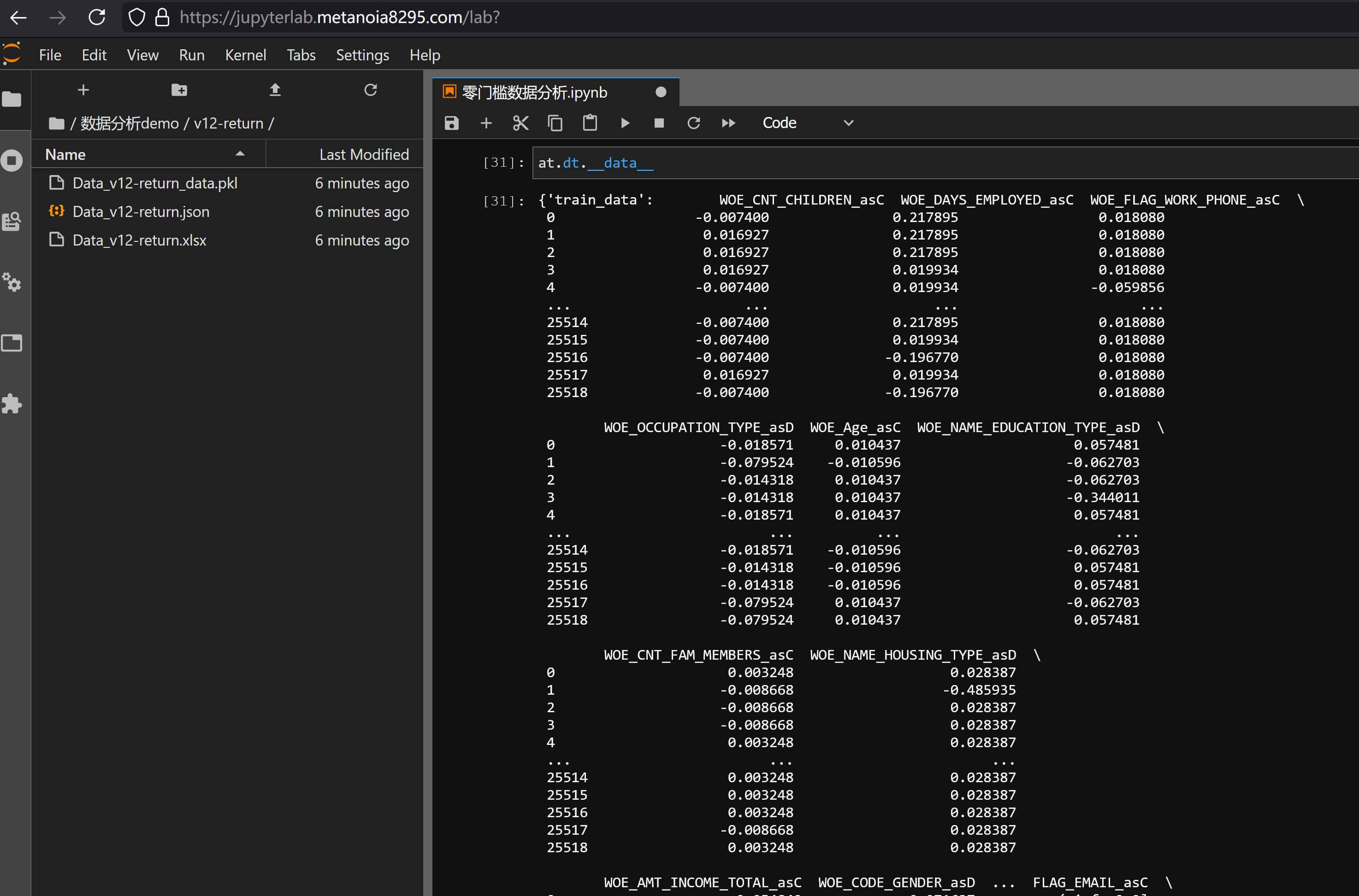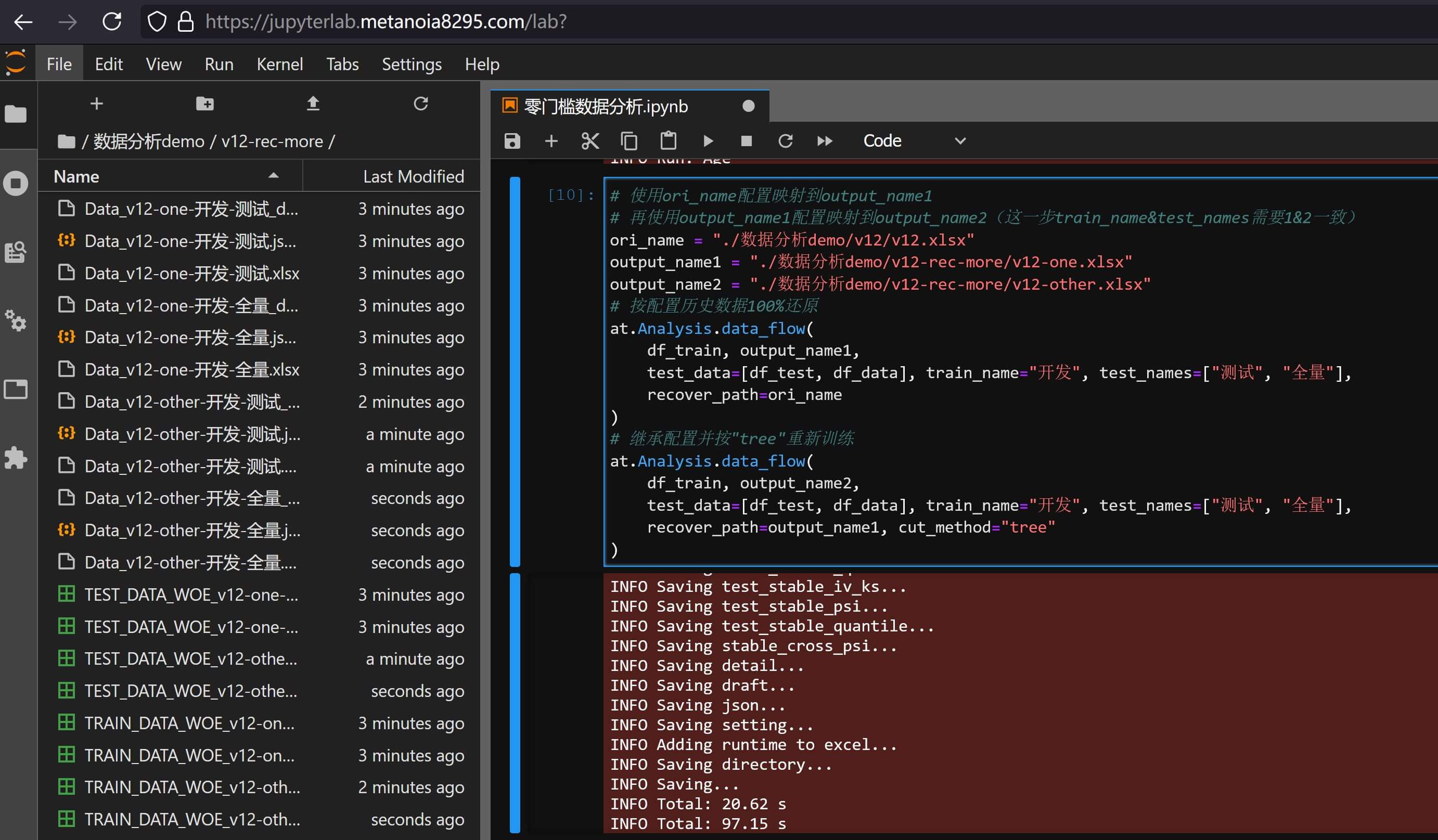 # only_recover_json 选填,默认False,在使用recover_path还原时是否忽略pkl,只按json文件还原配置这里来看一个稍微复杂的案例,其中output_name2处与直接修改5.7 分箱搜索和过滤处的cut_method入参效果相同: