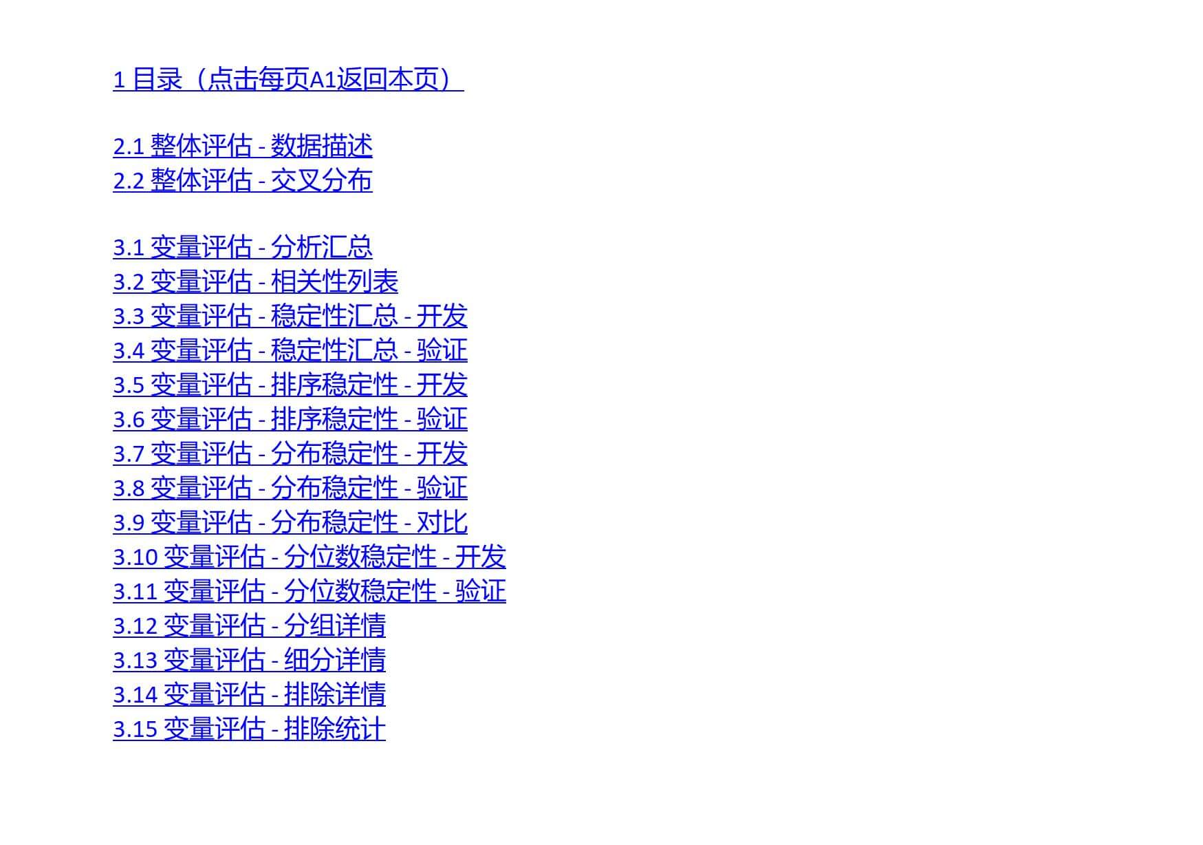 可以点击下载来查看分析报告:数据分析报告v1.xlsx,里面包含了各类变量分析和数据预览,目录如下: