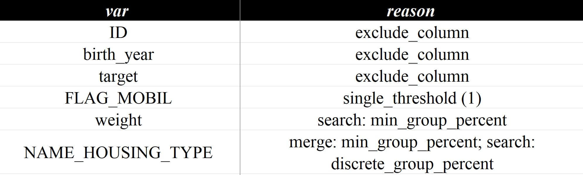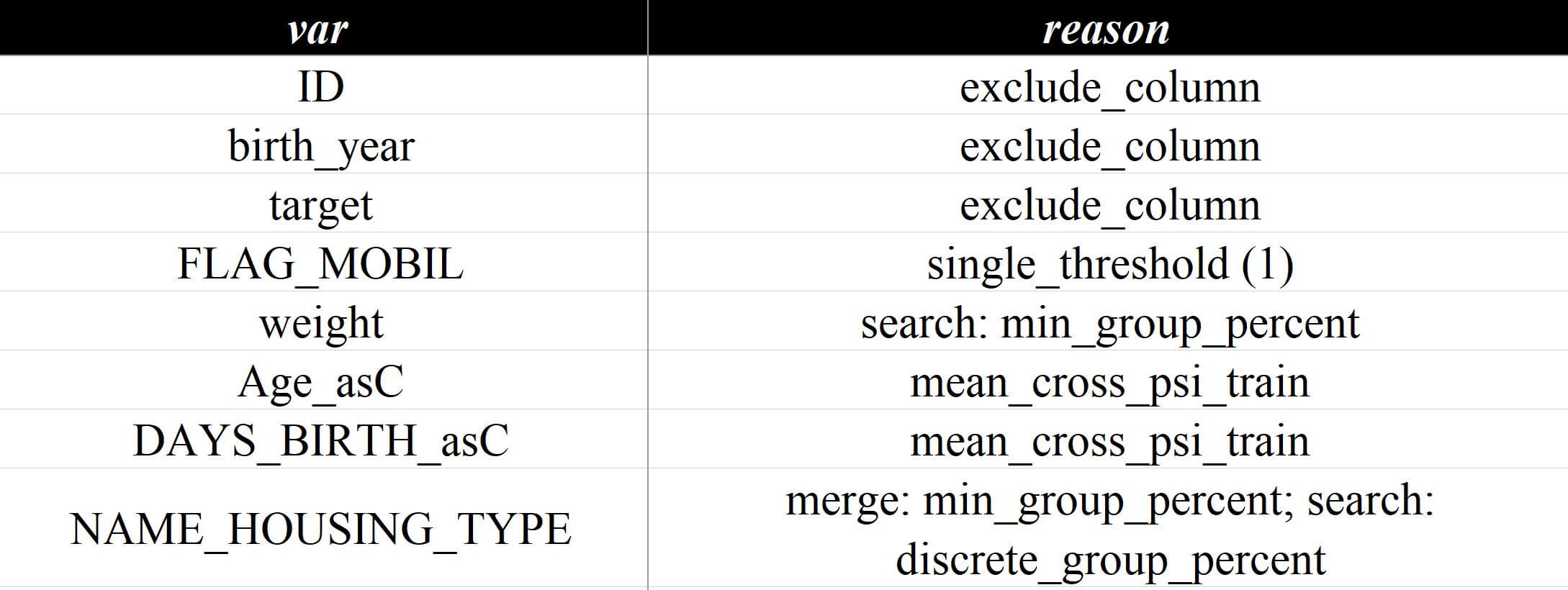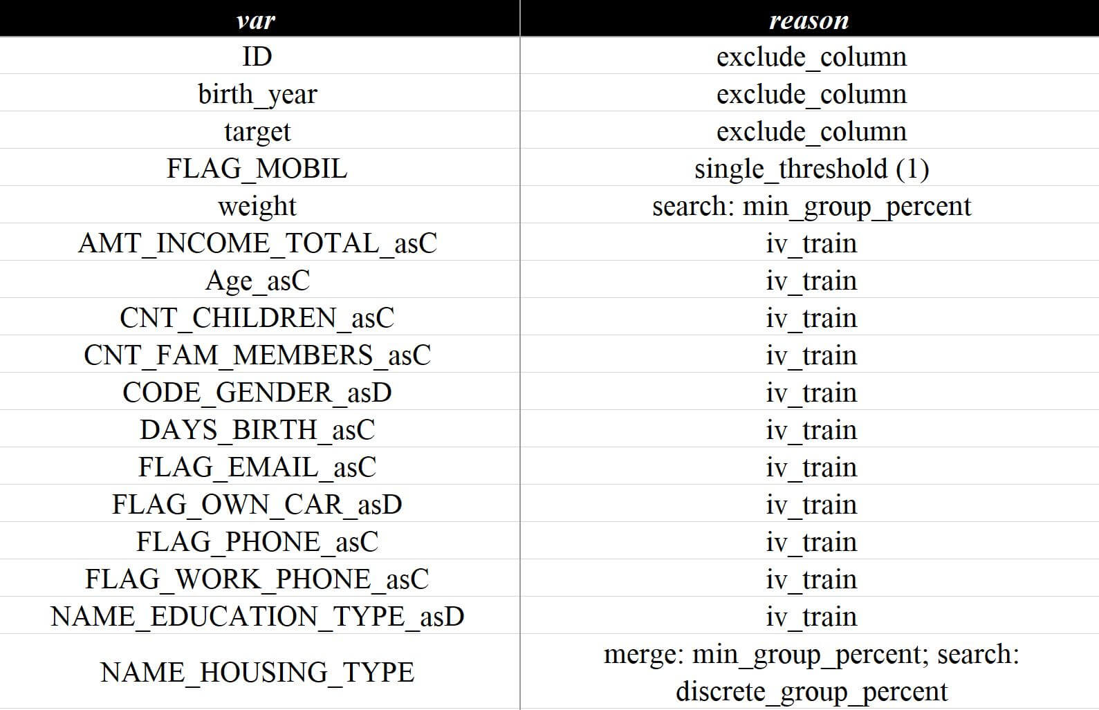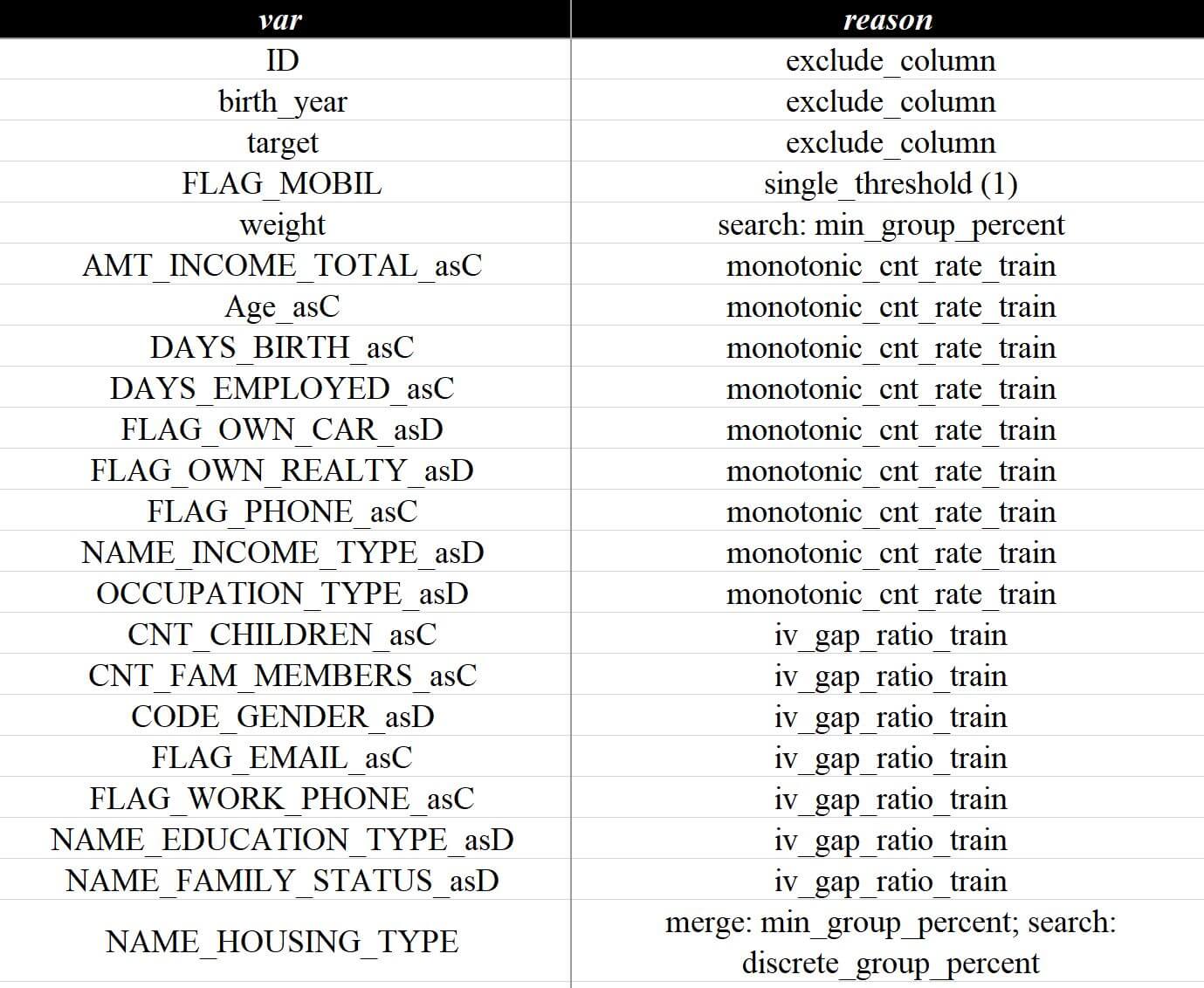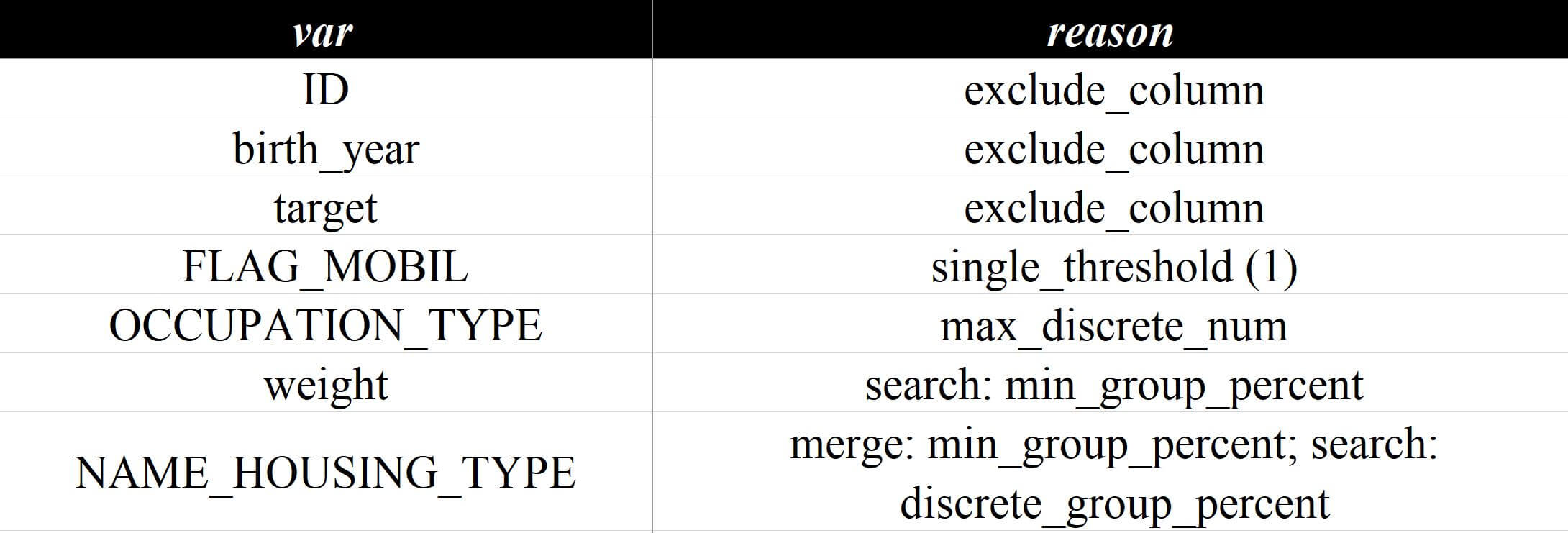 # sample_weight_name 选填,默认None,输入后来指定使用某一列的数值调整样本权重上述参数构成了较为基本的数据定义,包括数据排除、数据集定义、数据权重设置、数据类型校准等,一般二分类任务常见会进行数据分箱计算woe/iv等,目前这个模块的task_type只支持"binary",