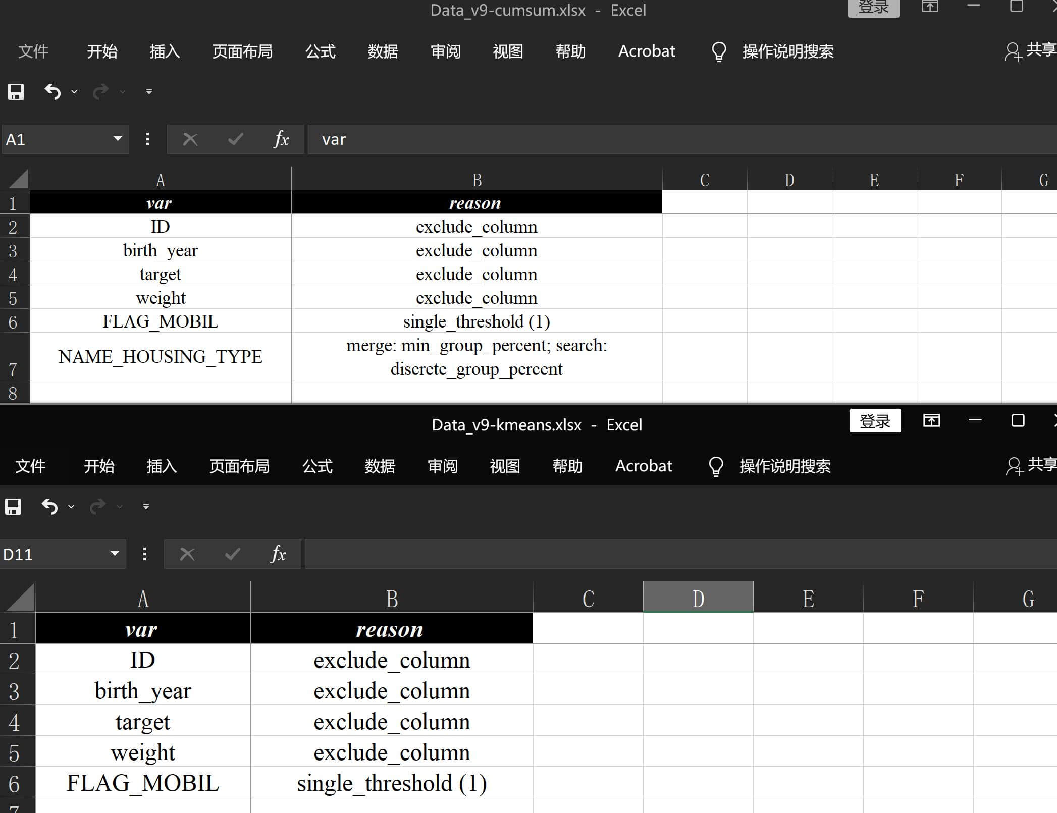 "./数据分析demo/v9-chimerge/v9-chimerge.xlsx", "./数据分析demo/v9-ratemerge/v9-ratemerge.xlsx"